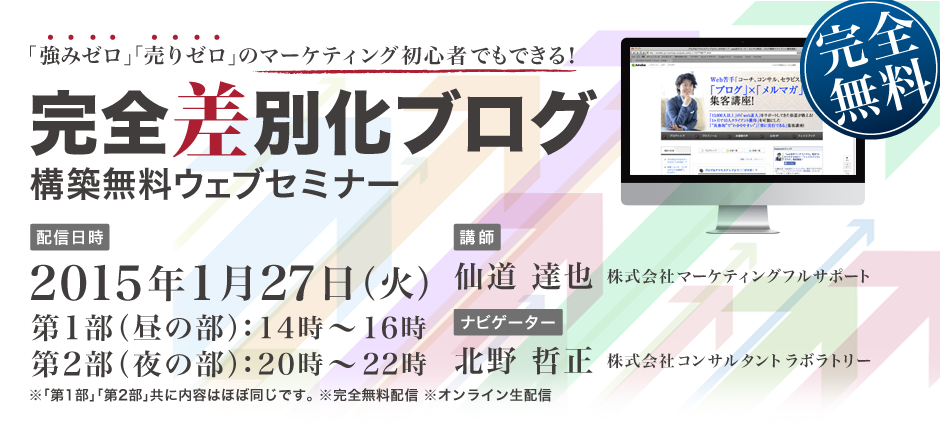 私、北野哲正が、今回の「完全差別化ブログ」構築セミナーのナビゲーターを務めさせて頂きます。